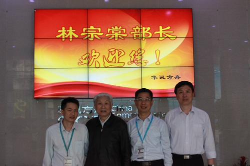 4月28日,中國名牌戰(zhàn)略推進(jìn)委員會主任、原國家航空航天工業(yè)部部長林宗棠,加拿大華人學(xué)者林云教授蒞臨華訊參觀指導(dǎo)。 集團(tuán)副總裁丁慶、總裁辦主任何忠洲,陪同林宗棠部